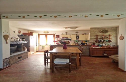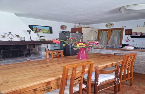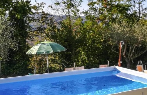 On a green hill, surrounded by numerous olive trees and only about 18 km from the beach of Fano on the Adriatic Sea: Holiday home with private above-ground pool (in fenced area) and garden. The farmhouse for 5 people is suitable for a relaxing holiday in a quiet, fresh environment. where you can take refuge after sunbathing and diving into the Adriatic Sea, but where you can rest by bathing in the pool for exclusive use or sitting in the garden overlooking a large olive grove with a view of the Apennines and the Furglo gorge. There are numerous historic excursion destinations nearby, such as the famous stalactite cave "Grotte di Frasassi", the Palazzo Ducale in Urbino and many medieval mountain villages such as Montemaggiore sul Metauro, Orciano and Mondavio. Mobility: Not suitable for people with reduced mobility DEPOSIT refundable at the end of the stay after checking the condition of the house. The security deposit can be returned by bank transfer
