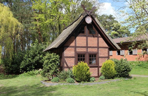The detached holiday cottage is located on this idyllic equestrian farm. The house consists of two floors and is cosy and fully furnished. The house has a terrace with garden furniture. The large garden is also at your free disposal. The ideal place for riding holidays or a holiday with your own horse. There are numerous opportunities for riding out across the heath and through the surrounding woods. Indoor boxes are available for your own horses for a fee. You can ride directly from the farm into the neighbouring forest.