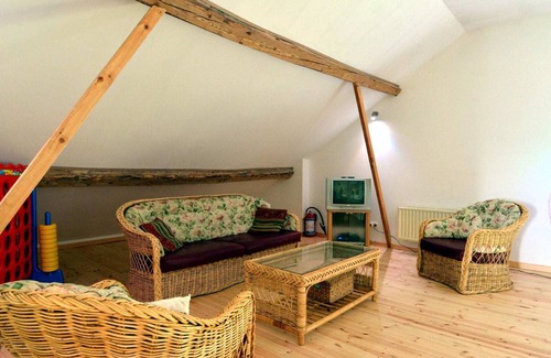 This characteristic group home is located in the heart of the Ardennes, near La-Roche-en-Ardenne. The house has 4 bedrooms and is ideal for families. The recreation room and spacious garden provide entertainment for young and old. The nice town of La-Roche-en-Ardenne is nearby and the area offers every opportunity for sporting activities, such as kayaking, rafting, cycling and hiking. Medieval Durbuy is also easily accessible. You will also find a ski lift 20 km away, which makes this house the ideal base for a winter sports holiday. The nearest center is 5 km from the house. The house has been completely renovated and has a modern interior. The living room with bar, dining room and kitchen are on the 1st floor, as well as some bedrooms. The 2nd floor, which is partially open, has 2 private sitting areas. Public transport is located 500 m from the villa.