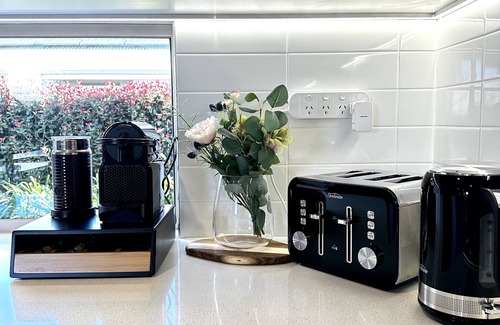 Opening modern kitchen with overlook garden view. All bread maker, coffee maker, all kinds of tea are always ready to serve you for free.