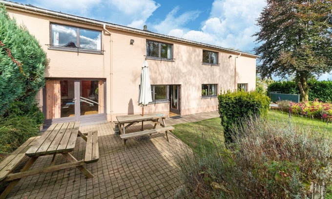 This charming holiday home in Montleban, Ardennes, Belgium, accommodates up to 18 guests in 5 spacious bedrooms, perfect for large groups or families. Set in a peaceful valley by the Ourthe River, it offers beautiful natural surroundings and is just 100 m from the forest with 3 mountain bike trails for outdoor fun.
