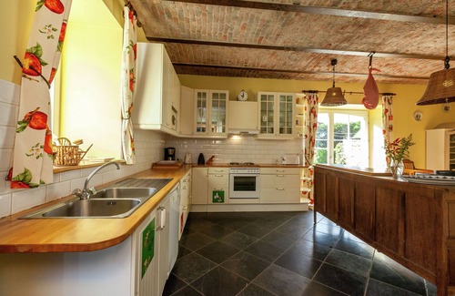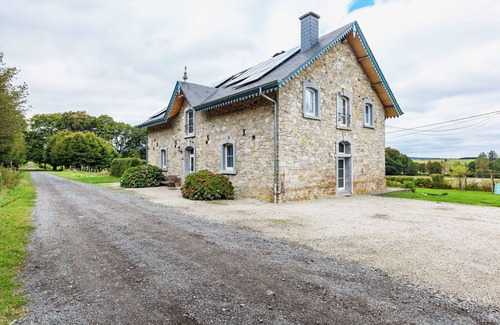 This cosy holiday home is a former stable that has been stylishly renovated into a luxury residence and is perfect for a group of 13. It is located in a peaceful area, 460 m above sea level on a gorgeous private property in Saint-Hubert and has 5 bedrooms. A sauna is in place for you to give maximum relaxation. The holiday home is situated near a lovely forest and you can go fishing for trout in a nearby private lake for a fee. There are tons of hiking and (mountain) biking trails in the region. Within 6 km from the home, you can find a restaurant and grocery store. In the spacious and nicely decorated living area, you'll find a cosy open fireplace. The completely furnished open kitchen with attached dining area has a homely, intimate feel and contains a dining table. The garden offers access to a large terrace with a barbecue where you can enjoy a panoramic view of the hilly surroundings. The home also has a trampoline, and sandpit for the kids.