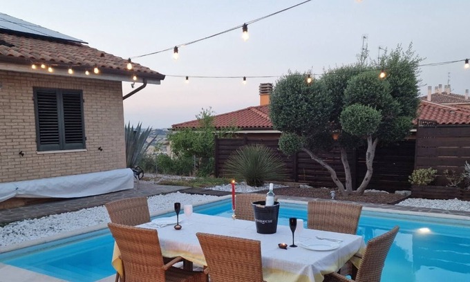 House with independent entrance located in the splendid hills of the Marche region,just 20 minute from the Riviera del Conero. The structure consist of a large bedroom with a double bed and a single sofa bed with slats and mattress and a work area.It also has an equipped kitchen,a utility room with washing machine and bathroom with shower. Outside you will find a heated swimming pool,a shower and a splendid terrace with sea view.The fast wifi connection is present both inside and in the garden.
