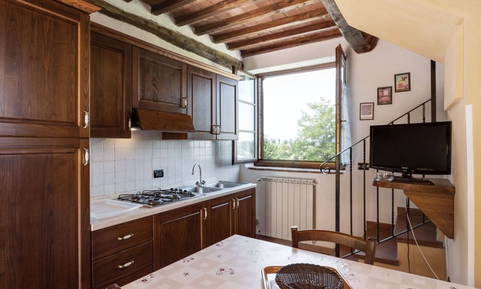 Located in Volterra, this 2-bedroom, 1-bathroom vacation home lets you experience it all. Fans of nature and the outdoors will love being 3 minutes by car from Balze di Volterra and 26 minutes from Castelvecchio Natural Reserve. With convenient onsite parking, you'll be ready to make the 6-minute drive to Roman Theatre or the 6-minute drive to Cathedral of Volterra.