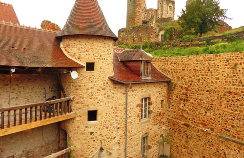 The 10th-century village features castle ruins built from local pink stone. You will find a tobacco shop, grocery store, bakery, tea room, pottery shop, 2 bar-restaurants, and post office. Weekly markets occur on Fridays for local food and Tuesday evenings for crafts. Cultural events happen year-round, including one of France's largest flea markets on the third or fourth Sunday in August.