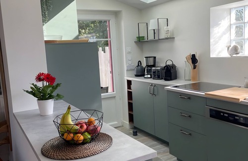 Located in La Faute sur Mer, this fully renovated 90 m² holiday home welcomes you with charm and elegance for a stay of up to 6 people. It features 3 bedrooms: one with a double bed, one with a single bed, and one with bunk beds upstairs. The property includes 2 bathrooms, one with a walk-in shower on the ground floor and another upstairs. The private kitchen is fully equipped. You also benefit from Wi-Fi, a television, a washing machine, a barbecue, and a baby cot at your disposal.
