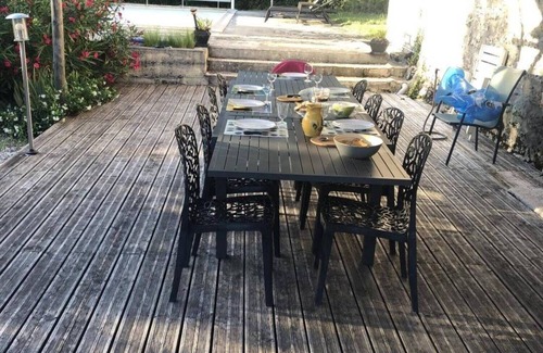 A 100m² wooden terrace with an arbour, ideal for enjoying the pool. The terrace is equipped with garden furniture, barbecue and plancha.
