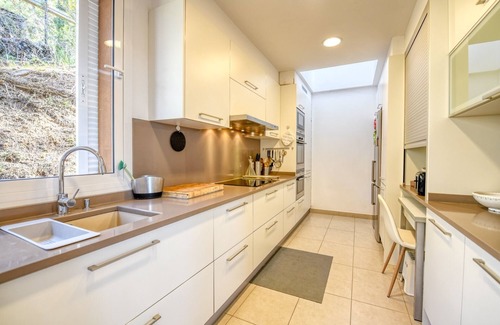 You can enter with the car to the parking of the house and from there access with elevator to the floor of the kitchen and living room or the floor of the bedrooms.