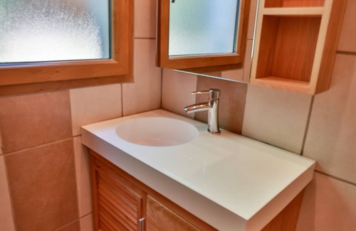This vacation rental offers a private outdoor area with a garden that offers relaxing mountain views, open and covered terraces, and a playground. Additionally, guests have access to a shared outdoor area with a fenced pool, a children's pool, and barbecue facilities.