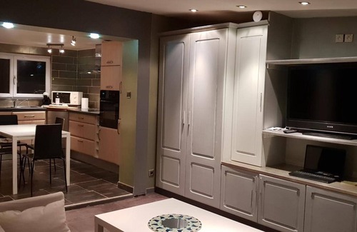 The holiday home Le Coq De Champagne, located in Dormans, offers views of the nearby mountains. The 60 m² property is designed as a semi open space, with sleeping arrangements (queen-size bed and sofa bed) gathered in a large room, an open kitchen, a bathroom, and separate toilets. It can accommodate up to 4 people. Amenities include Wi-Fi with a dedicated workspace for remote work, a smart TV with streaming services, air conditioning, a washing machine, as well as books and games. This holiday rental also features a private outdoor area under a 30 m² veranda, a garden, and a covered parking space.