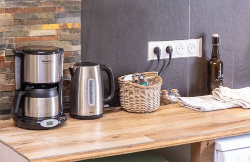 - Fully equipped kitchen**: induction stove, oven, microwave, fridge, dishwasher, coffee maker, kettle and toaster. Groceries and cleaning products provided. Table for 4.