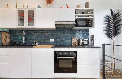 The holiday home Loft contemporain à 2 pas du centre is located in Bordeaux and is the ideal accommodation for a relaxing getaway. The 80 m² property consists of a living room, a fully-equipped kitchen, 2 bedrooms and 2 bathrooms as well as an additional toilet and can therefore accommodate 2 people. Additional amenities include high-speed Wi-Fi (suitable for video calls) with a dedicated workspace for home office, a TV, air conditioning, a fan, a washing machine as well as a dryer.