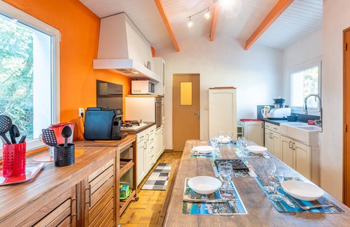 Just a short walk from the beach, the holiday home Maison 250m plage - grand jardin with step-free interior is located in L'Île-d'Yeu. The 100 m² property consists of a living room, a well-equipped kitchen, 3 bedrooms and 1 bathroom as well as an additional toilet and can therefore accommodate 6 people. Additional amenities include high-speed Wi-Fi (suitable for video calls) with a dedicated workspace for home office, a TV as well as a washing machine. A baby cot and a high chair are also available. This accommodation does not offer: air conditioning. This vacation home offers a private outdoor space with a garden and barbecue facilities.