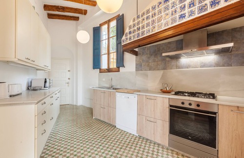 Located in Canet de Mar, the vacation home Masia Sant Miquel, a former indiano house and cultural heritage site, is ideal for family getaways. Accommodating up to 11 people, the 2-story property includes a living room, kitchen, 6 bedrooms and 4 bathrooms. It has high-speed Wi-Fi (suitable for video calls), a washing machine, TV and standing fans in all rooms (no air-conditioning). High chair and crib for the little ones are also available.