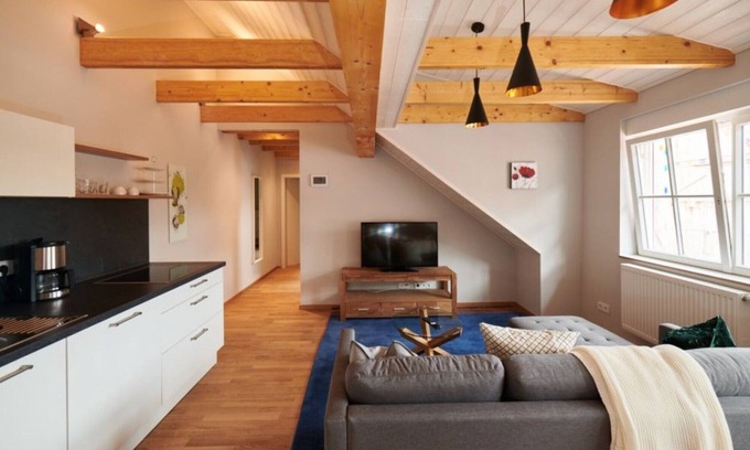 two newly built apartments in the attic for 2 - 4 people. The apartments are identical and lovingly furnished. Each apartment has two bedrooms, each with two double beds (1.8 x 2.0 m or 1.4 x 2.0 m). Bed linen is provided.