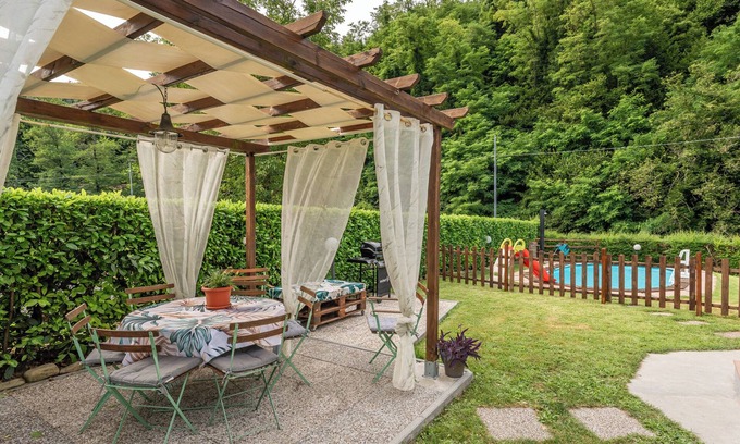 Located in Pescaglia, the holiday home Casa Neva has everything you need for a comfortable holiday. The 100 m² property consists of a living room with a sofa bed for 2 people, a well-equipped kitchen, 2 bedrooms and 1 bathroom and can therefore accommodate 8 people. Additional amenities include high-speed Wi-Fi (suitable for video calls) with a dedicated workspace for home office, a TV as well as a washing machine. A baby cot and a high chair are also available. This accommodation does not offer: air conditioning. This accommodation features a private outdoor area with a fenced pool, garden, two covered terraces, and a barbecue.