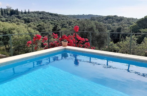 Enjoy the lovely pool and the spacious area around it for relaxing, with parasols and sunbeds, barbecue area, pool shower and garden furniture, as well as views of Mount Pantokrator and the sea.