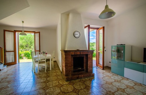 The living room looks out on a nice terrace staffed by table and chairs to enjoy eating and relaxing on rocking chair.All the house is surrounded by a big exclusive garden full of green, fruit tree, old palms, in a charming silence. Free Wifi, bedlinen and towels. Child friendly, free bicycles,outdoor shower, barbecue an a big free parking. The apartment is perfect to enjoy the sea en the hills of Cilento, in a relaxing area and with amazing views and great food.