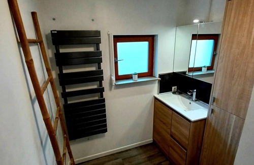 The accommodation is situated 100 meters from the forest and close to the Blangy estate and the Ile Verte aquatic center. It is nestled in a tranquil and lightly trafficked neighborhood. The only minor disturbance is from the railway, located a few hundred meters away.