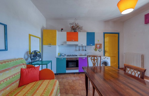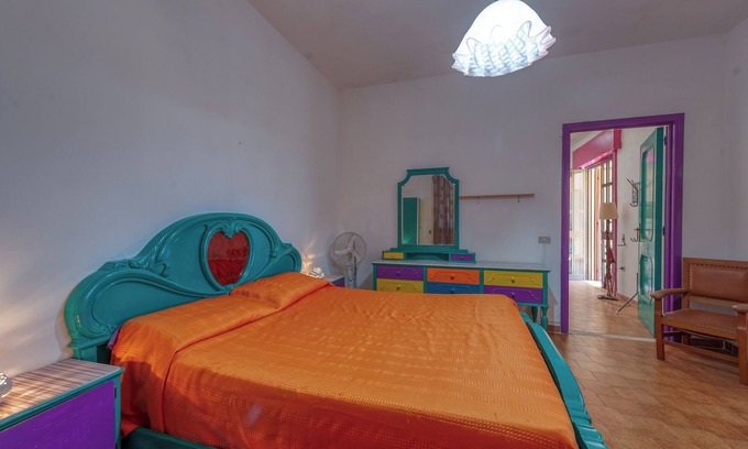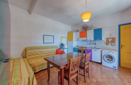 The holiday home Sprocketlandia - Bilocale is located in Frigole and is the ideal accommodation for a relaxing getaway. The 65 m² property consists of a living room with 2 sofa beds for one person each, a well-equipped kitchen, 1 bedroom and 1 bathroom and can therefore accommodate 5 people. Additional amenities include Wi-Fi, a fan as well as a washing machine. In addition, a table tennis table is available for your use. This accommodation does not offer: air conditioning. This vacation rental features a private covered terrace for relaxing evenings.