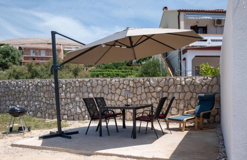 Holiday Home Violet is located in Pag, a beautiful island in Zadar County, Croatia. This charming holiday home offers a comfortable and serene retreat with stunning views of the Adriatic Sea. Situated in Pag, a picturesque island known for its beautiful beaches, rich history, and unique landscapes. Modern amenities such as air conditioning, Wi-Fi, and parking are often provided for guests' convenience. Holiday Home Violet offers a tranquil setting ideal for families, couples, or groups looking to experience the natural beauty and cultural heritage of Pag Island.