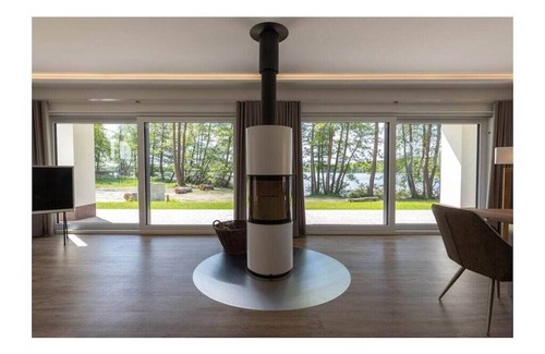 The comfortably furnished villa - 160m² directly on the Great Lychen Lake Living room with fantastic lake view with kitchen and dining area & fireplace = 60m² 1 x bathroom with shower, bathtub & toilet 1 x bathroom with shower & toilet 3 bedrooms with box spring beds, smart TV and lake view Large, comfortable terrace with lake view Swimming area Outdoor sauna Canadian (for 4 people) 2x SUP, 2x single canoe 11 KW charging station The villa on the lake is located on a 60,000m² site. 10 high-quality houses have already been built on this site.