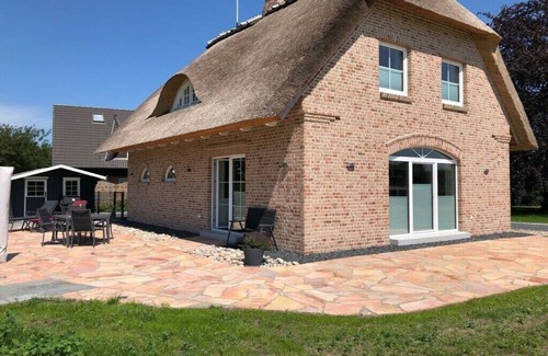 The Muschelsucher holiday home is a dream home, surrounded by nature. The "Muschelsucher" holiday home is just a few minutes' walk from the beach and the small harbor of Langballigau. The thatched-roof house was built in the typical Frisian style. On the ground floor, guests enter the hallway with a passageway to the new and fully equipped kitchen with state-of-the-art appliances such as an induction stove, Nespresso capsule machine, dishwasher, and everything you need for a vacation. The living room is equipped with a flat-screen TV, DVD player, music system, a cozy seating area, and direct access to the garden and terrace. The typical Frisian tiled stove is also located in the living area. An additional guest toilet has also been added in the hallway. On the first floor, there are two bedrooms, each sleeping two people. A large bathroom with a bathtub, shower, and a sauna is also available to our guests on the first floor, offering wellness within your own walls! A washing machine and an electric oven are also available. Tumble dryers are also available and can be used free of charge. The entire property is equipped with holiday linens. The beds are made upon arrival, and towels, bath towels, sauna towels, sauna slippers, guest towels, tea towels, and bath mats are provided in the holiday home. Wi-Fi access is also included and is included in the price. The holiday home is located on a large, green property with its own driveway. The property is partially fenced. There are several terraces at the house. Bicycles can be stored in a private garden shed on the property. Dogs are welcome, but must always be registered. There is a fee for these. A portable dog fence can be provided for a fee/deposit.