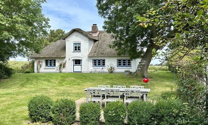 The Deichgut is a wonderful thatched-roof house in a stunning, secluded location. The furnishings are modern and unique. There are three comfortable bedrooms with high-quality mattresses. The living area of the thatched-roof house, with its dining table for eight people, two cozy sofas, and a beautiful wing chair, invites you to chat and relax. A cast-iron fireplace creates a cozy atmosphere. The kitchen-diner is perfectly equipped for a hearty breakfast, a quick lunch, or an elaborate dinner. The house stands on a beautiful plot with mature fruit trees. The Deichgut is an insider tip for people seeking peace and relaxation near the North Sea and wanting to feel as comfortable as at home on vacation.