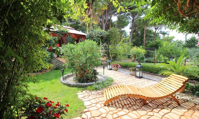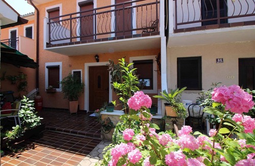 The holiday home is a terraced house and furnished in a functional style. The property is located in a residential area. Also due to its quiet and sunny location at the edge of the forest the domicile is popular. Available for your exclusive use: sunbathing lawn, parasol, sun lounger, children's playground, barbecue facilities, terrace, pavilion and garden furniture. Jacuzzi in the gardenLocationPoreč. The holiday home is located on a 200 sqm enclosed garden plot with meadow, flowers and shrubs. The landlord lives in a separate building on the property. No youth groups are welcome! Access is via a side road (asphalted). Parking (for 2 cars) is available on the property. Specialair conditioning. Air conditioning only on the ground floorFacilities: internet access (WLAN) and washing machine. TV reception takes place via satellite. Wellnesswhirlpool. Dogsallowed, EUR 8.00/pet per day. DistancesShopping 600 m, restaurant 300 m, town center 800 m. Poreč: doctor 200 m and discotheque, pharmacy, bank each 800 m. airport in Pula 55 km. Children's playground 50 m. In summer: Adriatic Sea 400 m (beach 400 m featuring gravel, rocks and bathing plateaus). horse riding in 2 km. mini golf, diving, water sports each 500 m. boat rental in Brulo Sport 500 m. tennis in Sports center Diamant 200 m. golf in Umag Savudrija 35 km. DivisionHoliday home, 2 floors, 4 rooms (including 3 bedrooms), 120 sqm, in total 7 beds (including 1 additional bed). RoomThe entrance to your holiday home is located on the ground floor, is at ground level and leads directly into the vestibule.Ground floor: Living room (20 sqm) with sitting area, TV, dining area (6 seats) and access to the terrace (10 sqm, covered, garden furniture, 1 table, 6 chairs). Kitchen (7 sqm) with gas stove (2 flames), oven, extractor hood, fridge (icebox), microwave, coffee machine and electric kettle. Bathroom (6 sqm) with with shower facility, washing machine, shower, 1 washbasin, WC and window. 1st floor: Bedroom (10 sqm) with 1 double bed and access to the balcony. Bedroom (11 sqm) with 1 double bed and access to the balcony. Bedroom (12 sqm) with 1 double bed, 1 additional bed on sleeping accommodation and access to the balcony. Bathroom (8 sqm) with bathtub with shower facility, 1 washbasin, WC, bidet and window. Terms of lease and pricesIncluded in the priceinternet access, air conditioning, parking place, electricity, gas, water, final cleaning, bed linen, Wireless Internet access. Side costs-Additionally(Payable when booking)/registration fee obligatory 12,50 € per object per stay. local tax.Deposit:EUR 100,-/object