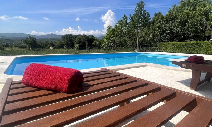 Holiday home with swimming pool and air conditioning is located in Donji Prolozac. Holiday home with swimming pool and air conditioning provides accommodation, featuring View, Balcony/Terrace, Wellness Facilities, among other amenities. This House features View, Balcony/Terrace, Wellness Facilities, to make your stay a comfortable one.
