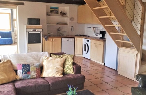 From the lovely terrace, around the barbecue, you can enjoy the peace and quiet and the view over the countryside. Beautifully renovated, bright and cosy, it's ideal for a peaceful family holiday.