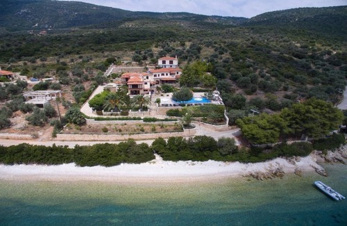 Arrive, swim, eat, swim again, relax, sleep and enjoy true vacations! Away from the noisy stressful city life, one's vacations are valuable, that's why we do our best to make you feel comfy and excited!120 sq.m of living area plus garden in front, can accommodate up to 6 adults in 3 separate double bedrooms. The villa offers: Fully equipped kitchen Living room area with dining table for 6 people A/C in every room and in common areas Daily cleaning service Swimming pool Pool bar Beach is in front of you, less than 1min on foot Private parking and BBQ area Free WiFi Once we meet in the port of Alonissos (Patitiri), we drive together to your villa Provide all necessary information regarding places of interest Bike/Car/Boat rental upon request Baby cot available upon request Ferry boat ticket issuance (roundtrip) upon request Ideal for those who seek peaceful vacations in a beautiful surrounding with olive and pine trees, away from the noisy city life. Stunning day rise views for families, couples, or groups of friends who will enjoy relaxing holidays in an unspoiled natural environment with direct access to the beach (1 min away) or its large swimming pool. The villa has 2 floors. The first floor where the main entrance of the villa is, consists of a large living room with sofas and a large dining table for 6 adults. The fireplace in the corner and the satellite TV with more than 100 international channels provide moments of relaxation and briefing. The same floor hosts a fully equipped kitchen with all the necessary amenities, from a hi-tech BOSCH oven & stove, microwaves, dishwasher, toaster, fridge to coffee appliances, cupboards and any kitchenware needed for the guests. The second floor comprises of 3 individual double king size bedrooms with 2 fully equipped bathrooms, with bathrobes, towels and hairdryers. Each bedroom has a private balcony offering view to the natural surrounding.Short descriptionOther : Non-smoking houseShort description 1Number of kitchens : 1SurroundingNearby sports facilities : Canoeing, Diving, Fishing, SurfingRental Facilities : Boat rental serviceGarden and outdoorGarden facilities : Garden furniture provided, GrillOn-site leisure facilities : Outdoor swimming pool shared use, Swimming poolService benefitsService facilities (may incur additional costs) : Cleaning service during your stay, Drinks service, House personnel