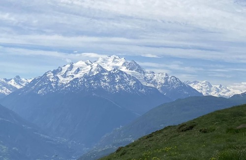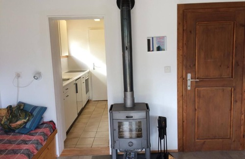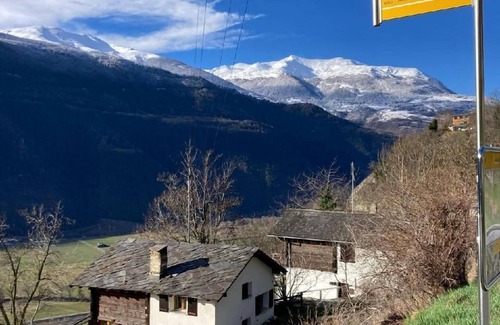 The Malu vacation home in Ausserberg has a beautiful bright living room with wood heating, a bathroom (shower/WC) and a well-equipped kitchen (incl. dishwasher) on the first floor. On the second floor there are 3 double bedrooms (2 with 2 single beds, 1 with a double bed of 140 cm) and 1 separate WC. It has a garden with a seating area with dining table and large sun blinds, a swing and comfortable chairs. There is a view of many beautiful mountains and a mostly blue sky. You can also see the valley, which is less pretty. The vacation home is located on the edge of the Unesco World Heritage Site “Swiss Alps Jungfrau-Aletsch” and in the middle of the hiking area “Sonnige Halden” on the Lötschberg south ramp: starting point for the Baltschiedertal with its magnificent bisses, close to the Brigerbad, many excursion possibilities on foot or by post bus/train, for example to Zermatt, Saas Fee or Simplon. Unique flora and birdlife. Translated with DeepL.com (free version) Other leisure facilities: Hiking Excursion possibilities: Hikes directly from the house or by post bus (and train) to Zermatt, Saas Fee, Visperterminen, the Simplon, Sion, Sitten, Martigny, Leukerbad and much more Other living room features (Living room1): Cupboard with games, CD player and CDs, hiking maps and books W-Lan not fixed, but via smaller device (limited capacity) Nearby sports facilities: Mountain climbing, Climbing, Bike tours Location description: Ausserberg-Brandenhütten lies 850 m above sea level, the village of Ausserberg at 1100 m. In between is the railroad station (incl. hotel/restaurant Bahnhof). Postbus connection to Ausserberg and Visp. Walk to Ausserberg: approx. 20 min.