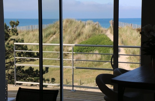 This beautiful holiday home, ideally located just 10 m from the sea, has been completely renovated and offers very good amenities. An extension will be added in 2021, offering numerous sea views! It can accommodate a family of up to 5 people, all on the ground floor with a living room opening onto a large wooden terrace overlooking the dunes and opposite the Jersey islands. It comprises a living room with sitting area and fireplace, satellite TV, WiFi, hi-fi, DVD player, 3 bedrooms (1 master bedroom with a 200 x 160 cm bed, 1 double bedroom with a 190 x 140 cm bed and one bedroom with a 190 x 90 cm child's bed), a fully-equipped open-plan kitchen, a small kitchen on the first floor, two bathrooms with walk-in showers and 2 separate WCs. Its location between Cap Carteret and the Pointe d'Agon-Coutainville means you can discover the west coast of La Manche with all its maritime activities (from Cap de la Hague to Mont St Michel), its wild and unspoilt nature (Parc naturel des Marais), its D-Day history with its many commemorative sites, not forgetting its gastronomy... The diversity and richness of the Manche region's heritage make it an ideal place to discover and stay on this peninsula, where there is something for everyone. The house is located in a small village, so you can try your hand at sand yachting, go for long walks or bike rides in the protected dune area that runs alongside the sea, and enjoy fresh lobster just a stone's throw from your accommodation!