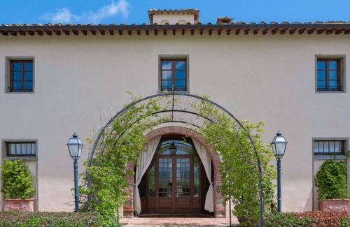 This fantastic villa is surrounded by olive groves and gardens and is ideal for an unforgettable, relaxing holiday in one of Tuscany's most beautiful landscapes: the Val di Chiana. Here you will be close to renowned cities of art and history such as Florence, Siena, Cortona, Assisi, Montepulciano and the Chianti area. The villa retains its original architectural style, with terracotta floors, doors and windows with stone frames and ceilings with wooden beams and bricks. The period furnishings of the interiors, enriched with vintage objects and attention to detail, contribute to creating an exclusive atmosphere.