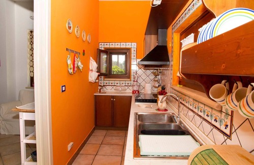 The house is on the ground floor and covers an area of about 140 square metres and is characterised by Mediterranean furnishings, where white dominates and offers its guests a feeling of complete relaxation and above all privacy. Large living room entrance with fireplace, dining table that can seat up to 16 people, relaxation area with stereo system for listening to music, digital terrestrial TV, bookcase with reading texts and a collection of comics for the little ones. The kitchenette is equipped with a gas hob, electric oven, dishwasher, refrigerator, microwave oven and other kitchen utensils, cutlery and pans. The master bedroom with a double bed has its own bathroom. There is also a bedroom with two beds (can be made into a double bed on request) and a bedroom with two bunk beds. The second bathroom is shared between the latter two rooms. All windows are fitted with mosquito nets. Only on request (separate cost to be requested on site) it is possible to book the cook for the preparation of tasty and delicate dishes of Salento/Mediterranean cuisine.