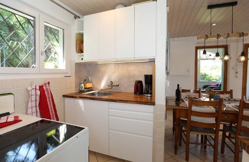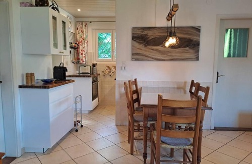 This detached single-family holiday home in a great location offers wonderful views of the lake, mountains, the Brissago Islands and the opposite shore of Lake Maggiore. It is located close to the border with Italy, approx. 70 metres above Lake Maggiore and is the perfect retreat in a beautiful, well-tended garden. A staircase leads from the car park to the extensive property, which is situated on the edge of the forest, surrounded by meadows, vines and palm trees, in an idyllic, peaceful location. The property extends over three terraces and is also safe for children. A 30m2 terrace, sheltered from the sun and rain, offers plenty of space and marvellous views. Although the house has a large number of beds (bedroom: 2 beds, children's room: 1 bunk bed, 3rd room: comfortable wide bed (120x200), living room: pull-out sofa bed (140x200), its friendly and functional furnishings provide a cosy atmosphere even for small families.