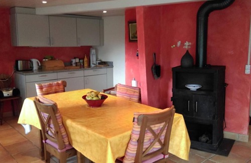 Traditional kitchen with wood-burning stove - perfect for cosy evenings and dinners with friends.
