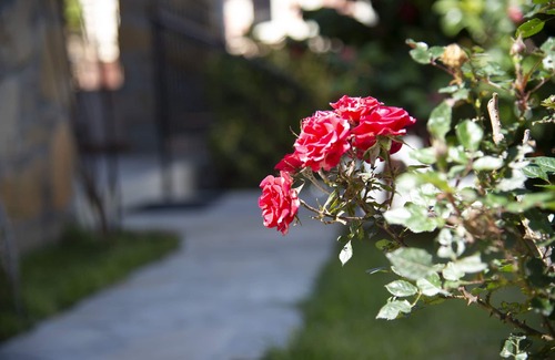 This beautiful Holiday stone house "Cretan Sun” is located in the Center of a traditional village Kondomárion, Platanias area, Chania Prefecture . It is an old stone House, which is renovated but retains much of its traditional character. Firstly, the good size plot has a garden with various trees and flowers, roses and full year grass as well as a parking space covered with green. A few stairs lead up one level above the road, where we find a nice comfortable terrace. Entering inside the residence we find a large open plan kitchen and dining area equipped with a fireplace.