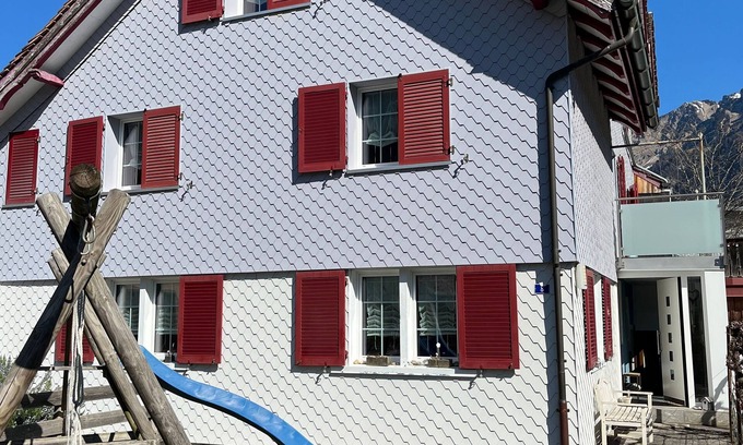 This charming holiday home in Flums, ideal for up to 5 people with a baby or toddler, offers comfortable living space on the ground floor level. Equipped with three bedrooms, it allows families and friends to spend their holidays together. A bathroom with bathtub and shower is available. Guests are welcome to bring their medium-sized four-legged friend (up to 60 cm high) as the property is fully fenced and therefore safe for your pet.