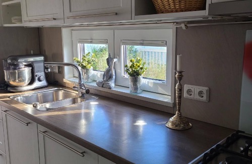 The accommodation features a modern American-style kitchen fully stocked with essential amenities including a fridge, freezer, oven, microwave, dishwasher, and coffee machine. You'll have everything you need to prepare delicious meals during your stay. A TV with German and Dutch channels provides entertainment after a day of exploring.