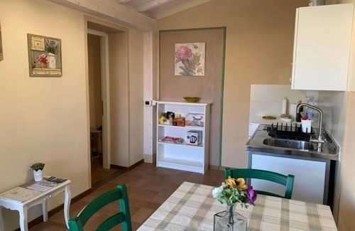 New property with independent entrance, garden with private covered terrace area and equipped with table and chairs. Inside there is a bright 20 sqm bedroom with colored wooden decorations and ceilings, TV, sofa and wardrobe, spacious bathroom also equipped with bidet, kitchen with dining area. Wifi free, barbecue. The villa is immersed in the garden with many fruit trees and flowers; the outdoor spaces are large and you can enjoy your holiday in privacy. The swimming pool (12x 6 m), in compliance with current legislation, is cleaned and cared for every day; it is shared and welcomes only guests who stay, maximum 8, so at any time there is ample relaxation space for everyone. By the pool, guests can enjoy the sun and nature in the shade of our large umbrellas, relaxing on the sun loungers in a spacious area, furnished with care and safety, thanks to the distance between the relaxation areas (about 2.5 meters). The whole property adopts extra hygiene measures and is sanitized.Short descriptionOther : Non-smoking houseShort description 1Number of kitchens : 1Other rooms : Reserved covered terrace area outside for lunch/relaxingGarden and outdoorGarden facilities : GrillOn-site leisure facilities : Outdoor swimming pool shared use, Swimming pool