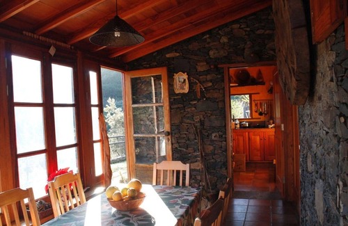 It has 2 bedrooms (master bedroom with a double bed in the attic) and the other with 2 single beds and a cot for small children, a bathroom with shower, kitchen (stove, refrigerator, microwave, fondue, blender, juicer, coffee maker, etc.), a living room with satellite TV, flat screen TV, Wi-Fi, stereo, CD's for guests, a fireplace, a sofa for 3 people and a hammock, a covered veranda with table, chairs and rocking chair.