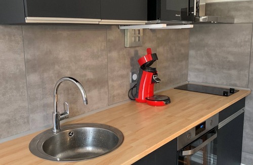 - Kitchen equipped with an oven, a microwave, a ceramic hob, a fridge with freezer and a necessary for breakfast (electric kettle, coffee maker and toaster)