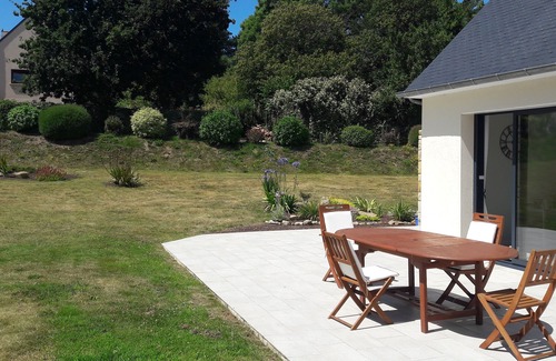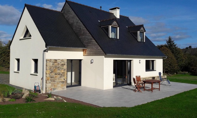 We rent our holiday home built in 2016, located 300 m from the beach, 1 km from shops, 2 km from the sailing school and the port. It is located on the Pink Granite Coast.