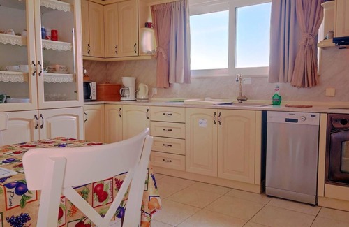 The exterior staircase lands on a spacious open-plan living and dining area with large balconies overlooking the sea and the Albanian coasts. Next to the living room is a small wc with the washing machine and all the clothes-washing facilities. The large traditional kitchen, which has recently been refurbished, provides exceptional cupboard and dining space, an oven, a fridge, and all the necessary utensils for the family's cooking and dining. The tranquil apartment has two bedrooms. The master bedroom features a double traditional metal bed and huge wardrobes, while the second one is a twin bedroom with mounted wardrobes and a balcony overlooking Kalami and the open sea. There is one bathroom, which is spacious, modern, and distributable for a large family's needs. Nikolas is a village house that provides air conditioning, Wi-Fi, and a washing machine. dishwasher, television, and a torso-small back balcony with mountain views.