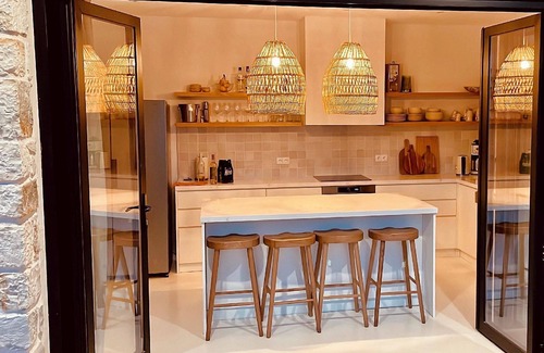 Villa Nepenthe is located in the south of Crete, nestled on top of a hill in a cozy traditional village. It has a breathtaking view over the valley with olive trees, mountains and the ocean. The rooftop has a patio with a garden and an outdoor kitchen. The interior complements the natural surroundings with stylish design. Luxury and comfort will make you feel at right at home. This will allow you to experience Greece at your own pace, surrounded in calm, positive energy and stress-free elegance.