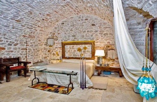 - Infernaccio : On the ground floor there is the luxury suite called "L'Infernaccio" accessible without having to climb any steps. Throughout the apartment, ancient architectural elements have been restored and mashed with modern design elements to convey a sense of comfort and elegance. The living room with kitchenette, which disappears behind a wardrobe, overlooks a splendid courtyard on the ground floor and a stone balcony with a view of the Infernaccio gorge and the surrounding mountains. The master bedroom and the double access bathroom are an example of an intelligent and creative restoration that contemplates the use of refined materials.
