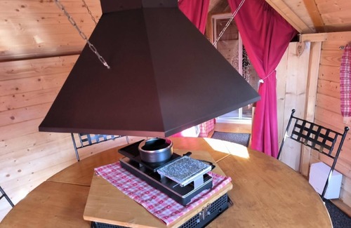 Finnish Kota, bedroom, equipped with a grill in the centre of the room for barbecue raclette pierrade