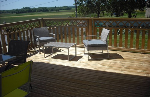 - the wooden terrace of 30 m2 equipped with a living room of garden and deckchairs,